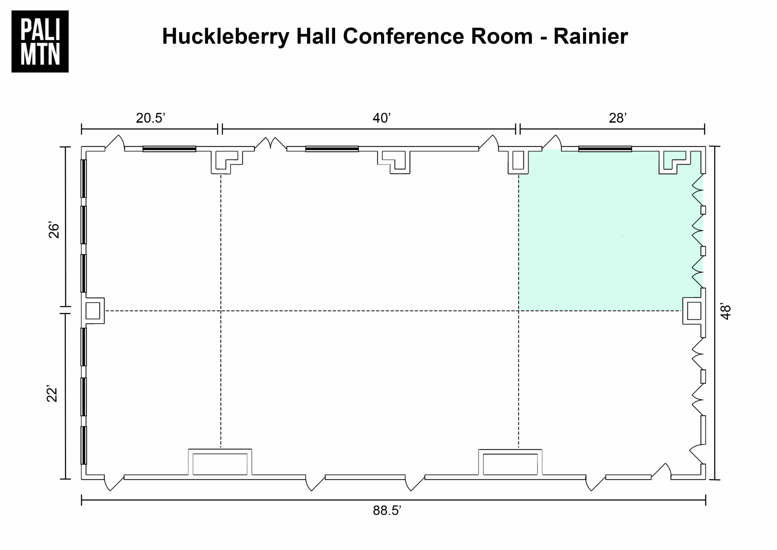 1 of 6 subdivided sections of the Huckleberry Hall Conference Room. It is conveniently located on the second floor of the dining facility. Floor Plan