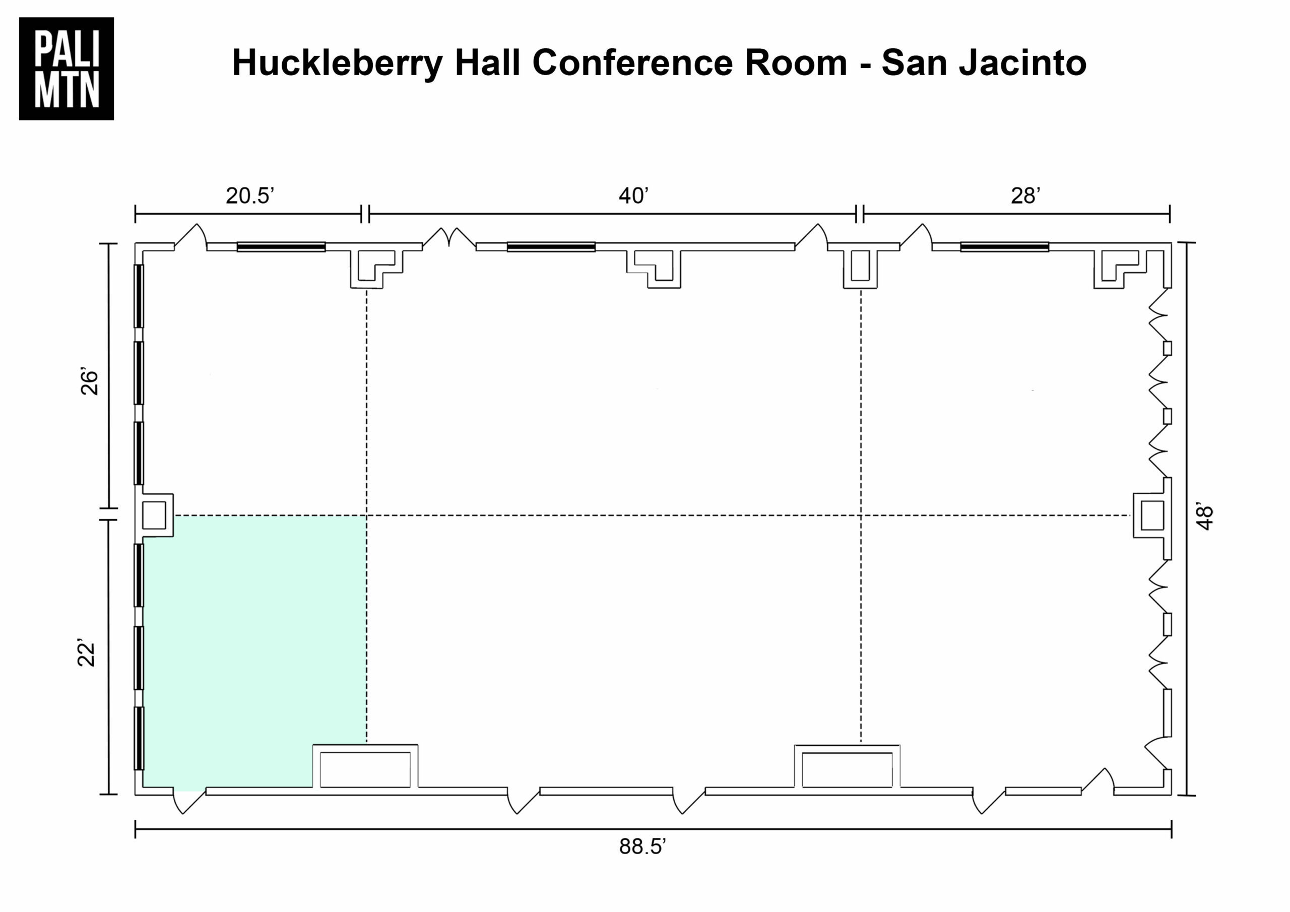 1 of 6 subdivided sections of the Huckleberry Hall Conference Room. It is conveniently located on the second floor of the dining facility. Floor Plan