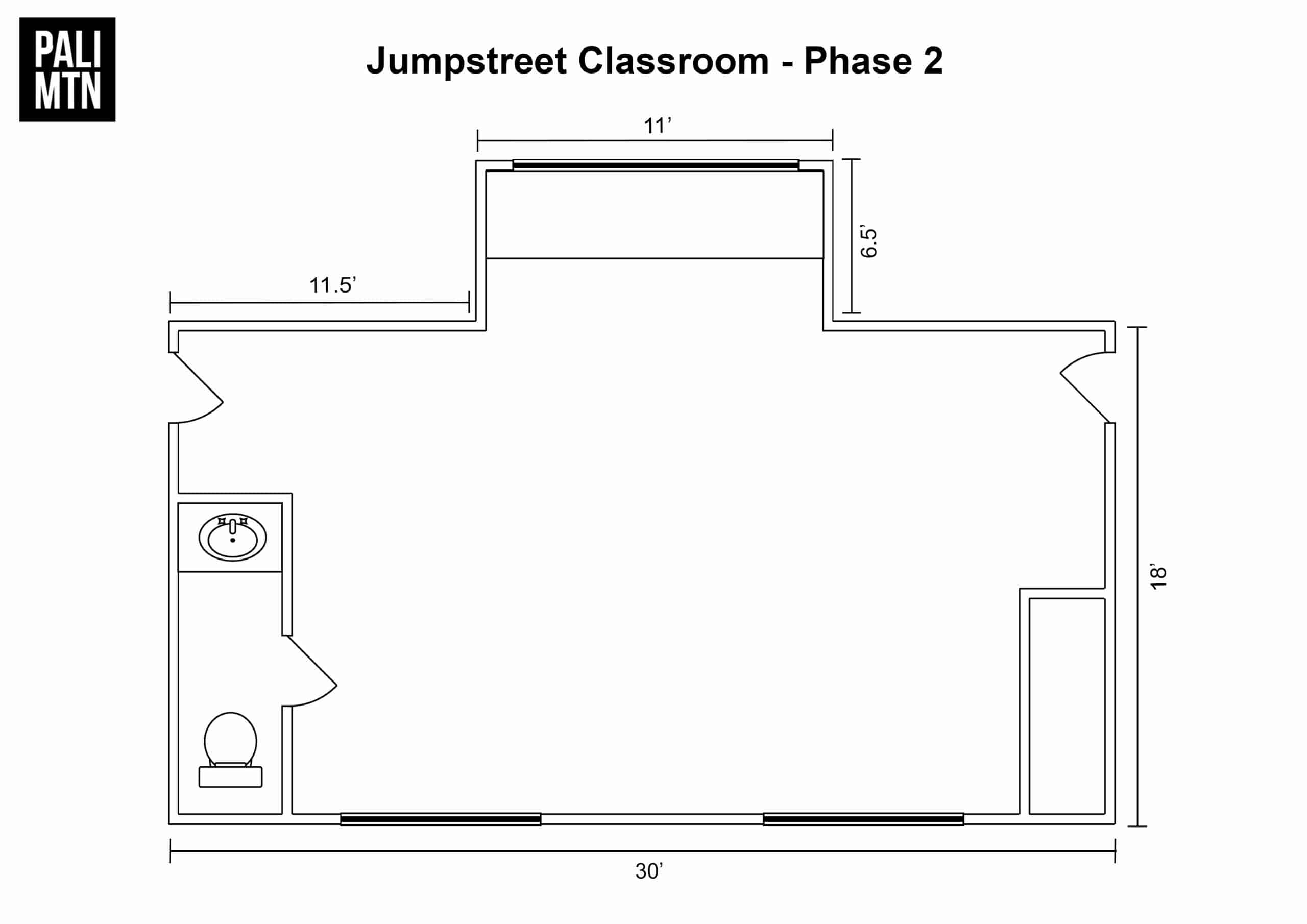 As the newest meeting space option, our deluxe classrooms are perfect for intimate gatherings and are located on the third floor of our deluxe cabins on Jumpstreet. Floor Plan